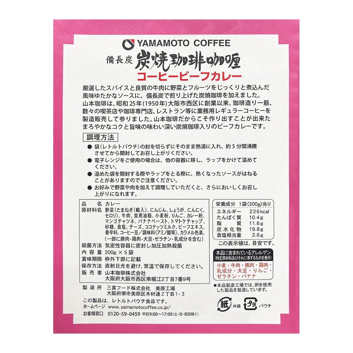 牛肉、食用油脂、小麦粉、りんご、カレー粉、マンゴチャツネ、バナナペースト、
